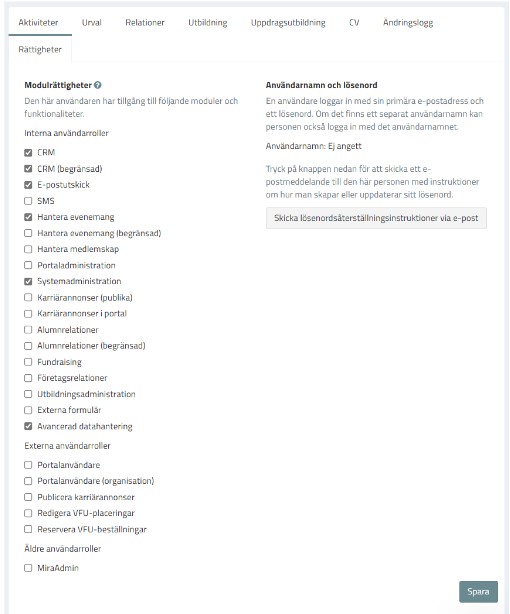 Om du märker att någon har kvar rättigheter de inte längre behöver, eller om något ska justeras, gör du ändringarna så här (kräver behörigheten Systemadministration):